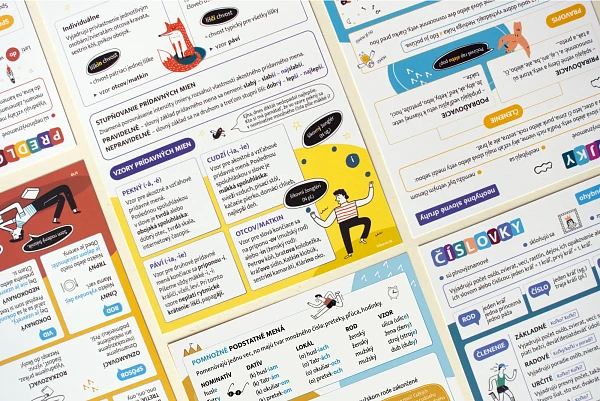 Séria 10 ilustrovaných kariet obsahuje kľúčové informácie z gramatiky slovenského jazyka. Gramatické pravidlá vysvetľuje na príkladoch. Na 10 kartách sú spracované okruhy ako vybrané slová, ohybné a neohybné slovné druhy, vetná skladba, vetné členy. Obsah kariet zodpovedá vzdelávaciemu štandardu zo slovenského jazyka pre 2. stupeň základných škôl.